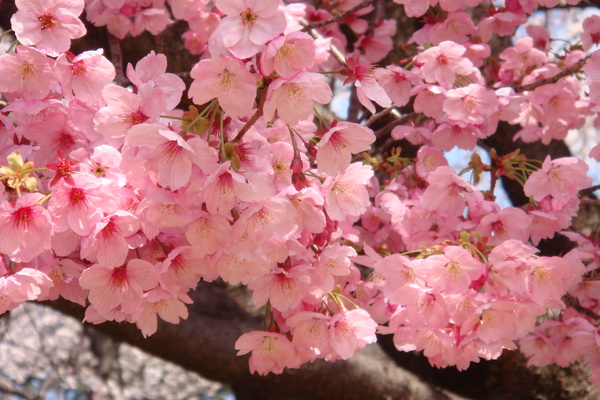 陽光爲數不清的櫻花瓣添上一抹桃紅